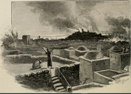 The usual crowd had assembled at Jerusalem for the feast of unleavened bread, and the Roman cohort had taken up its position on the roof of the portico of the temple . . . Thereupon one of the soldiers, raising his robe, stooped in an indecent attitude, so as to turn his backside to the Jews, and made a noise in keeping with his posture. Enraged at this insult, the whole multitude with load cries called upon Cumanus to punish the soldier; some more hothead young men and seditious persons in the crowd started a fight, and picking up stones, hurled them at the troops . . . These troops poured into the porticos, the Jews were seized with irresistible panic and turned to flee from the temple and make their escape into the town . . . upwards of thirty thousand perished.