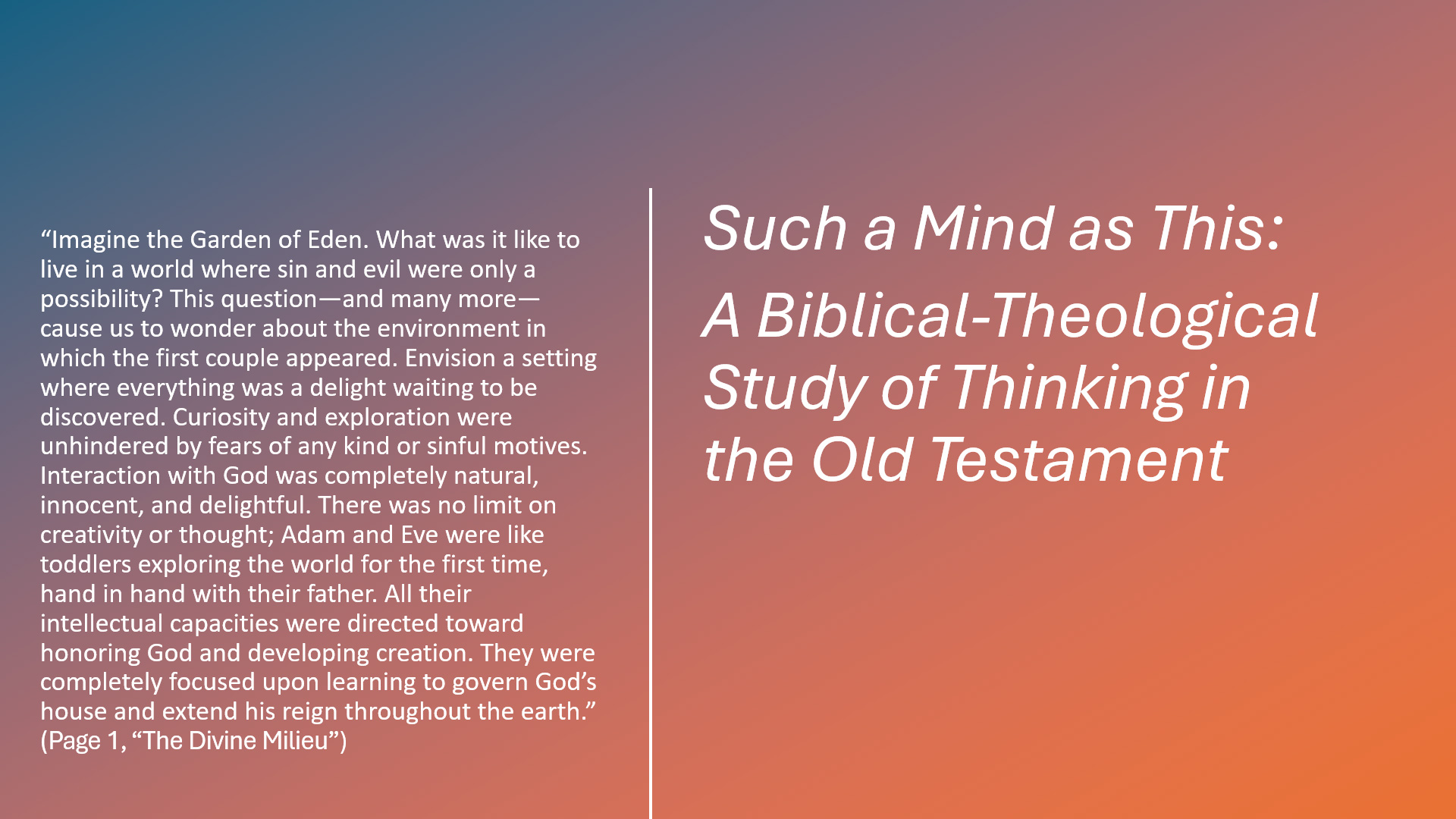 This site supports my book, Such a Mind as This: A Biblical-Theological Study of Thinking in the Old Testament.